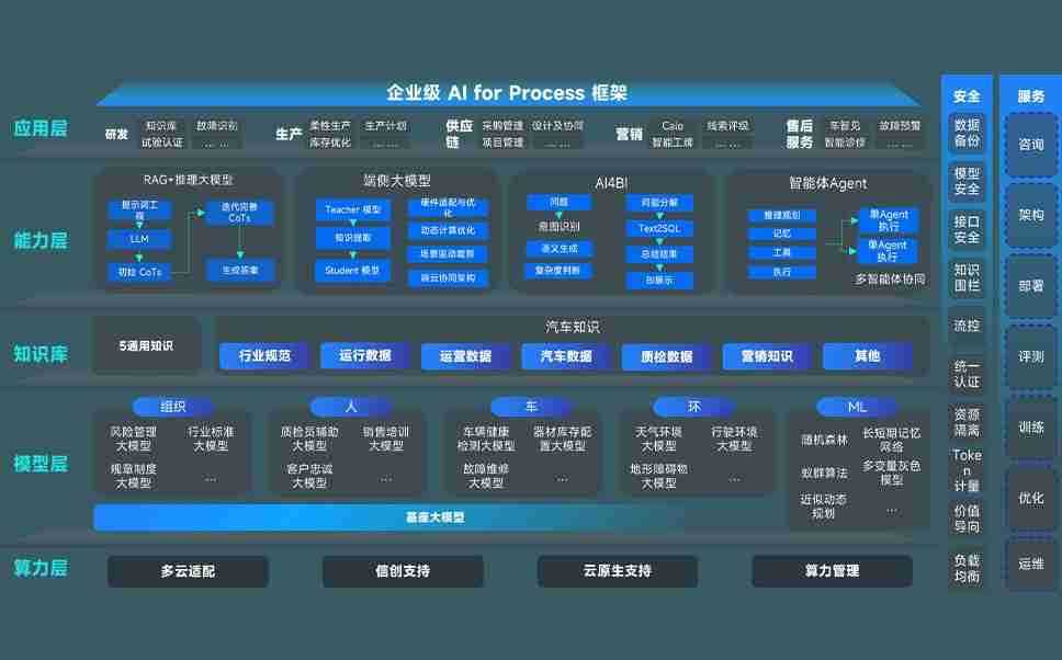 NG电子游戏问学智车解决方案是一套基于AI技术的汽车行业智能化系统,,,,覆盖从底层算力到顶层AI应用的全栈方案。。。方案由算力层、、、模型层和应用层组成:算力层,,方案支持多种一体机配置,,,具备云端灵活部署、、多云适配以及动态优化计算资源的能力;模型层,,,,NG电子游戏问学平台版提供了企业级AI应用一站式构建与管理平台,,支持基于后训练强化技术的汽车企业专属模型的训练、、评测和运营;应用层,,,NG电子游戏问学DeepSeek版提供包括超级员工、、智能招采、、、智能营销、、、、智能客服、、、AI for BI等一系列解决方案,,可助力汽车行业实现数字化转型,,,,让管理更智能、、响应更敏捷。。。。